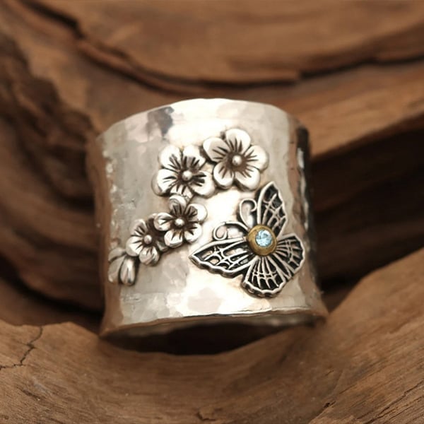 925 Bee Flower Butterfly Wide Band Ring